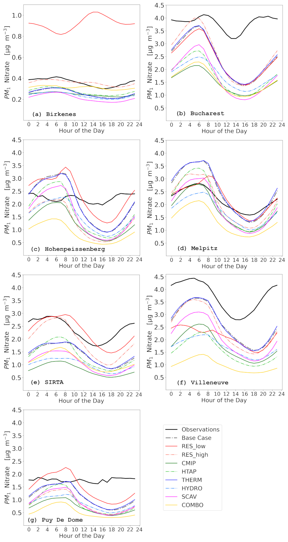 4 Evaluation of different model setups in predicting observed PM2.5 and PM1 NO3- concentrations
