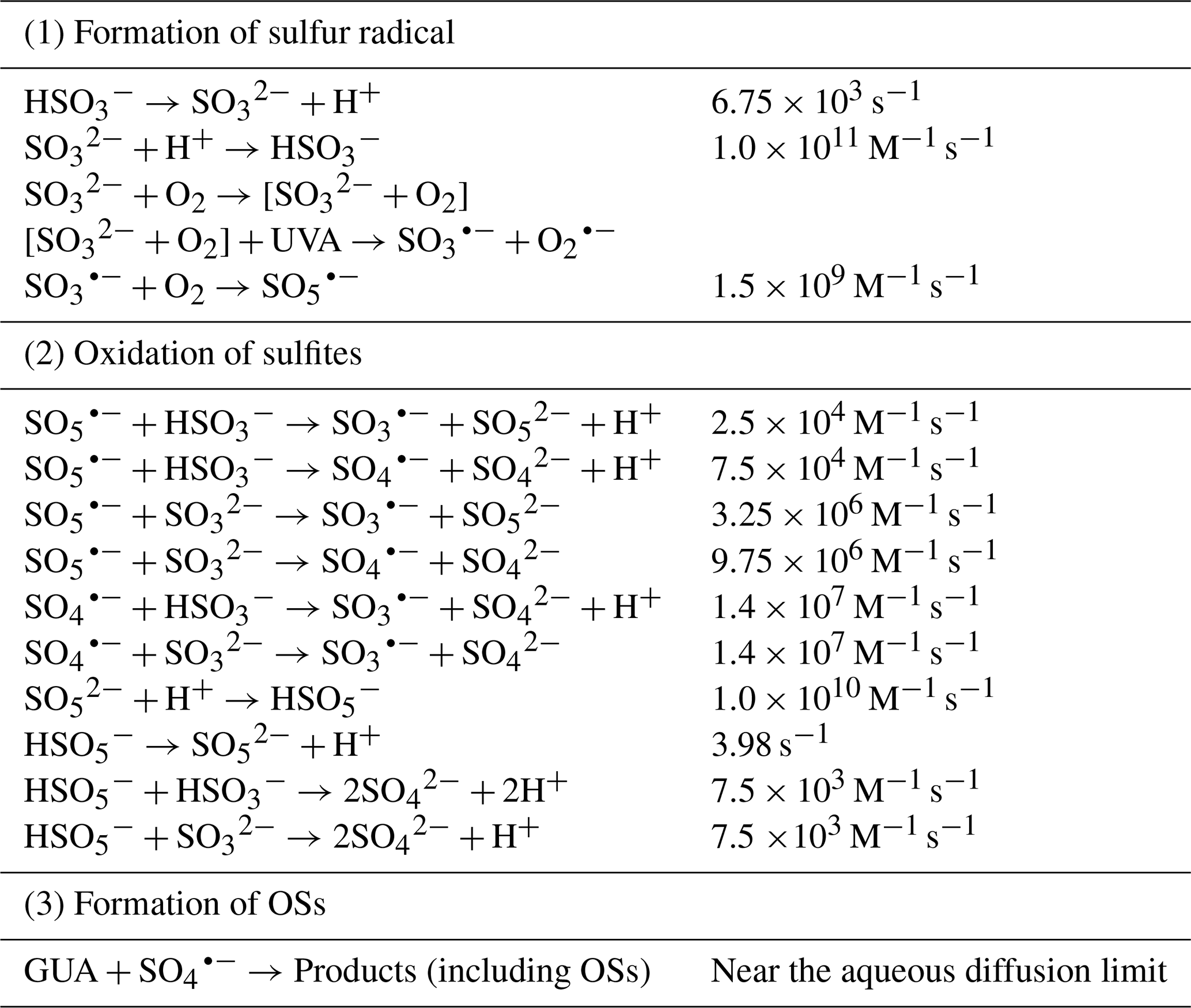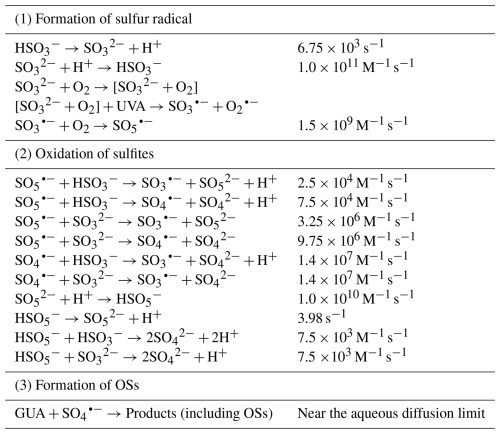 Table 1Reactions and rate constants of GUA photodegradation in Na2SO3 solutions (Seinfeld and Pandis, 2016; Rudzinski et al., 2009).