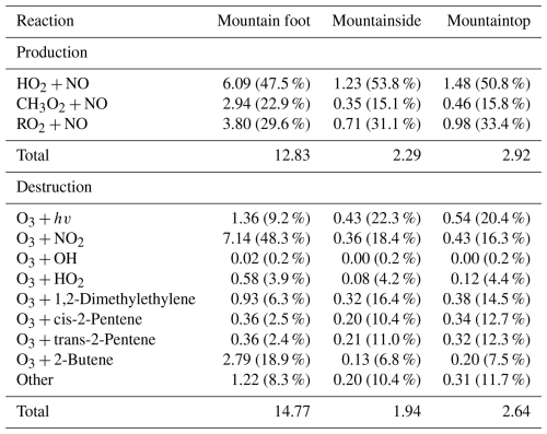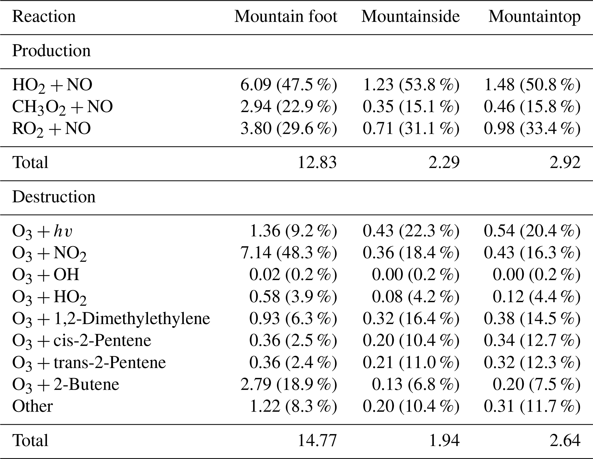 Table 1Daily-averaged chemical reaction rates governing O3 budget.
