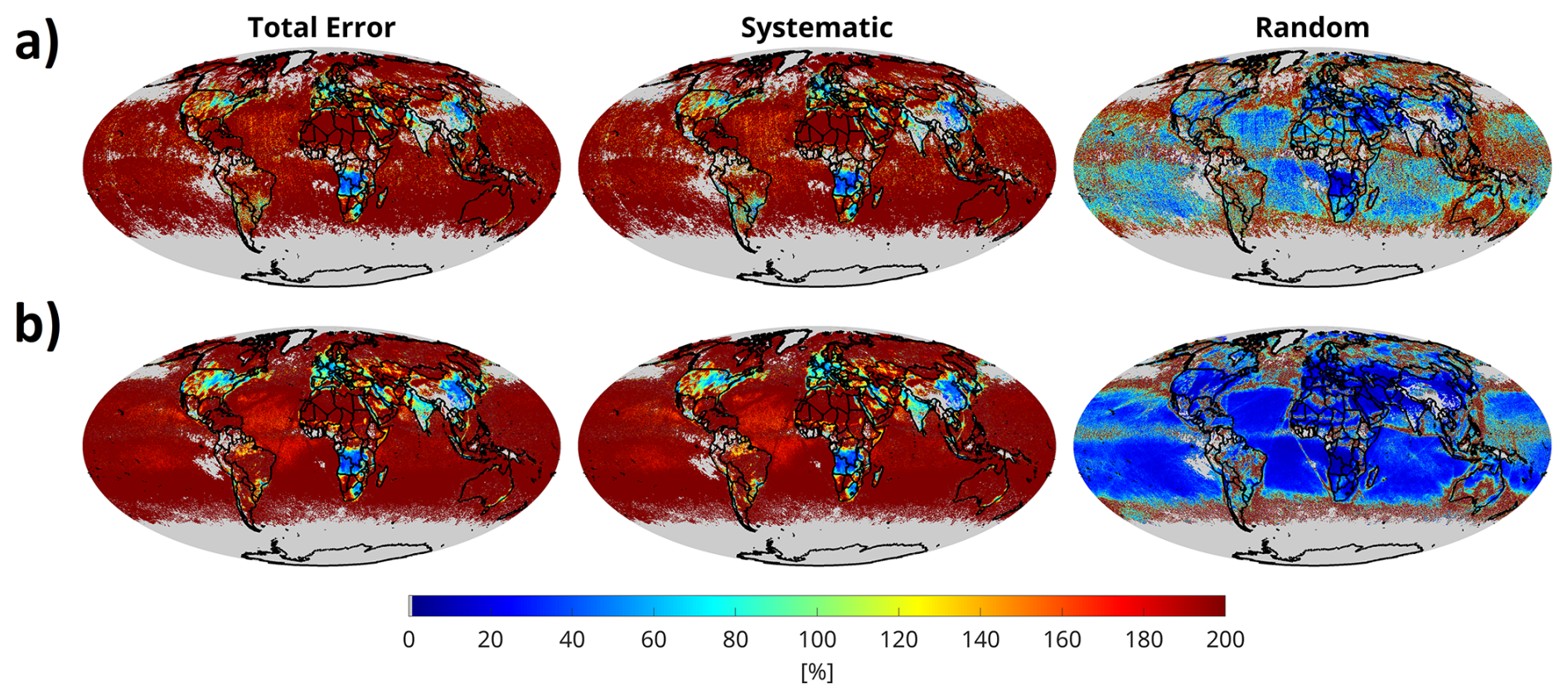 Random errors originate from the uncertainty estimates coming with the TROPOMI and OMI L2 products and are somewhat reducible by averaging, and are given by: