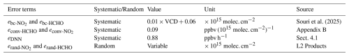 where erand-HCHO and erand-NO2 are random retrieval errors. All terms in Eq. (10) vary by time and location.