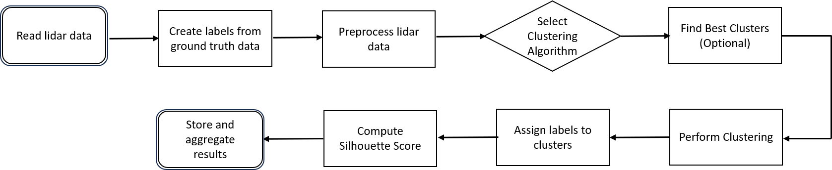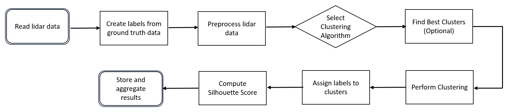The silhouette score is calculated from the mean intra cluster distance (in-vitro data) and the mean nearest cluster distance (data obtained by the multichannel lidar detector) for each pollen sample (Shutaywi and Kachouie, 2021). To label our modelled clusters, we employed a similarity search between the in-vitro results and the fitted results. By using the centroids from our models, we computed various distances such as Euclidean, Manhattan, and Minkowski (L3 norm). Our study showed that Spectral Clustering, when paired with Euclidean and Minkowski distances, achieved the highest silhouette scores, resulting in identifying grass pollen as the dominant pollen type, when grouped with Quercus, Betula and Fagus. The procedure is illustrated as a flowchart in Fig. 3.
