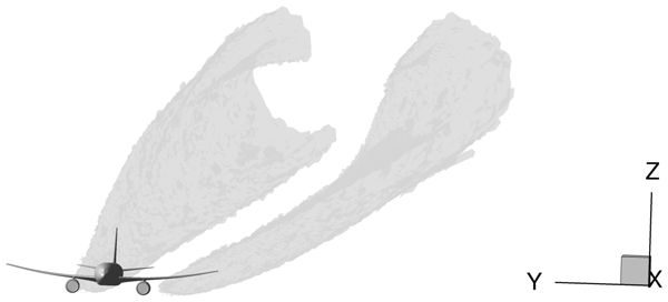 Simulation of a contrail formation and early life cycle for a realistic airliner geometry