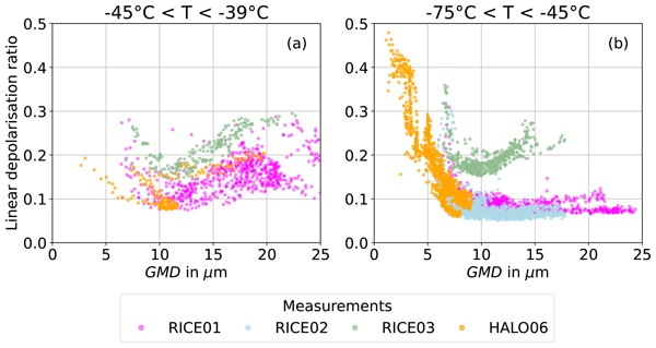 Cloud Chamber Studies on the Linear Depolarisation Ratio of Small Cirrus Ice Crystals