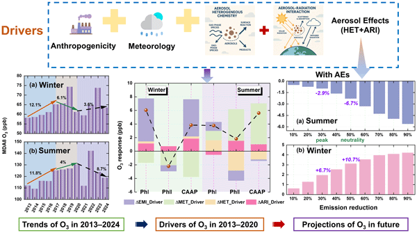 Tracking surface ozone responses to clean air actions under a warming climate in China using machine learning